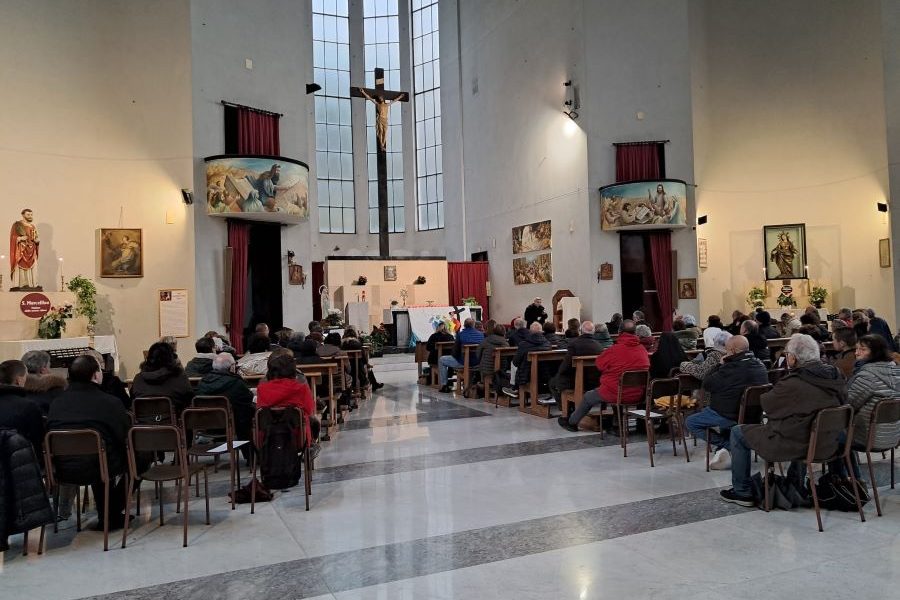 Adulti e giovani ci siamo ritrovati nella parrocchia di S. Marcellino per un incontro in preparazione al Giubileo e al tempo di Avvento. Alcuni dei partecipanti delle diverse parrocchie si erano incontrati precedentemente per organizzare il da farsi e quella sera ci siamo riuniti con gioia insieme ai nostri parroci.